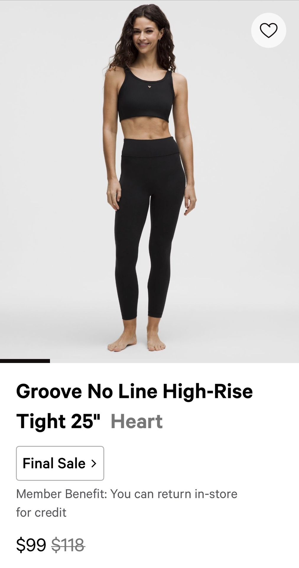 Lululemon Groove No Line High-Rise Tight 25" w/ Cute ❤️ Heart Cut Out (size 4 Women’s)