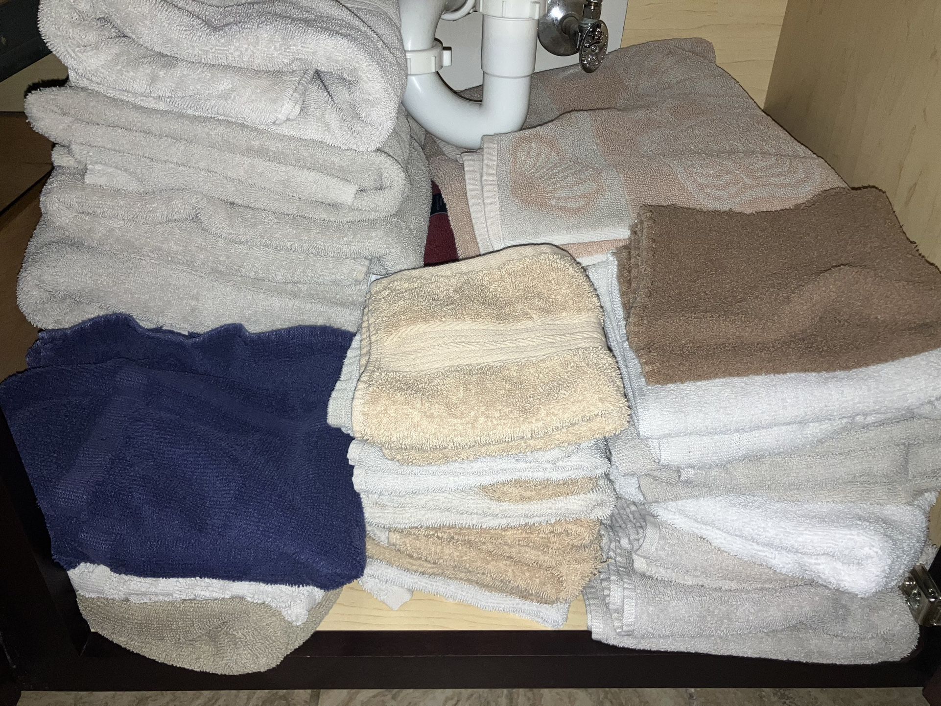 Assorted bathroom towels from wash cloths thru tub mats…only at $1 per towel. (Bath towels are also available for purchase.)