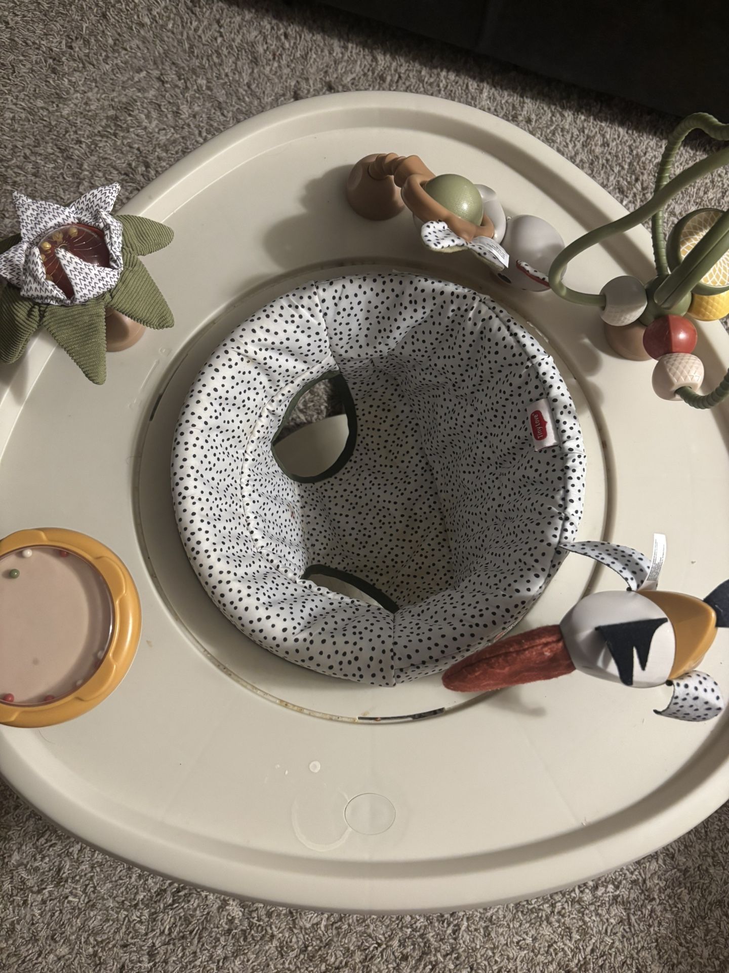 It has been used and it does have a stain on the actual seat, but other than that, everything works perfectly fine and it comes with all the pieces as well.
