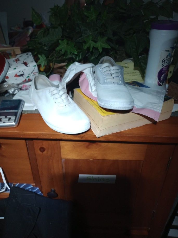 When I first got them they were really dirty so I cleaned them up gave him a little bit of a paint job now they're in restored condition and ready to wear their size 8 women's I have no idea the condition in men's but it looks brand new now and I guess that's what matters