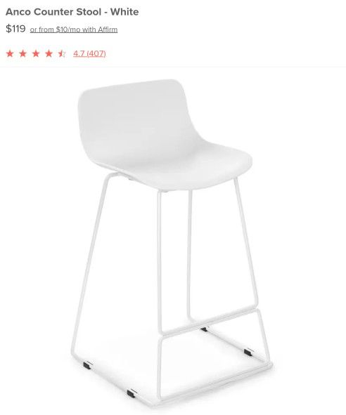 The Anco counter stool brings that level of leisurely lifestyle to any backyard situation. The Anco is made from molded plastic and set atop white powder coated legs. Whether you’re pulling up to a gilded bar, or to your kid’s treehouse, you’ll look great doing it. I have 4 of these chairs. Will sell them in pairs ($60 for pair) or all 4( $120).