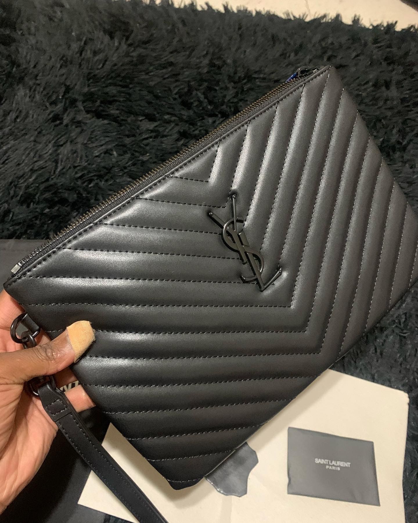 Hi have three kind …black, gold and silver ysl emblem