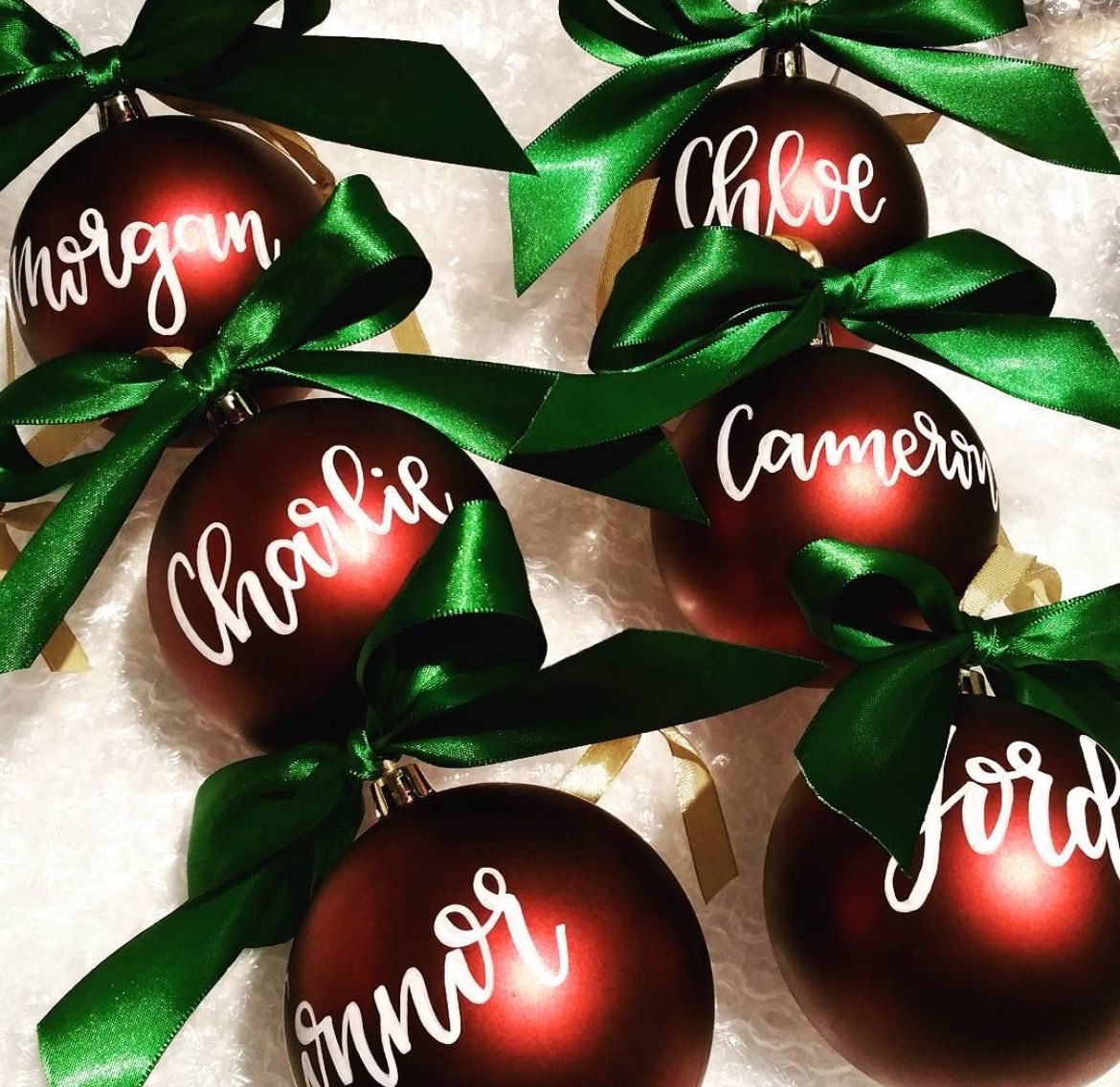 Holiday ornaments available to order! @ feeecustomgoodies Order your today! Let me know color, style, name They are $8 each.