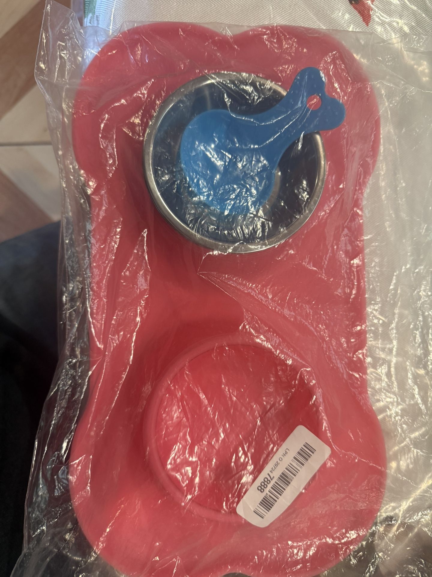 Joint dog food and water bowl. Pink. Comes With lids and scoopers