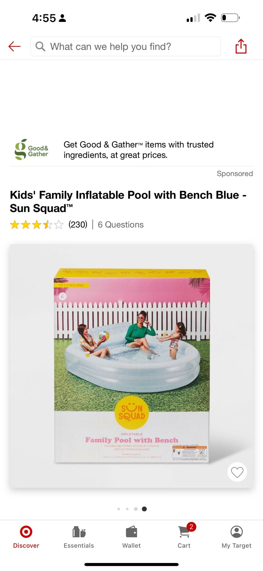 Kids' Family Inflatable Pool with Bench Blue - Sun Squad™