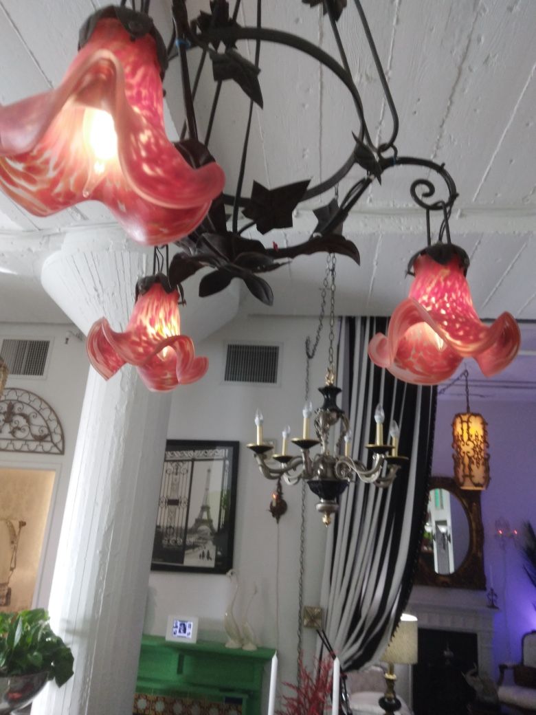 Pictures don’t do justice. Difficult to capture the beauty and fine workmanship on this pair of light fixtures. The venetian glass shades are very thick glass and heavy. The sculpted and painted metal are exceptionally detailed. Delivery available.