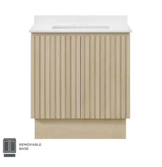 Glacier Bay Precine 31 in. Single Sink Light Oak Bath Vanity with White Engineered Stone Top(Assembled)