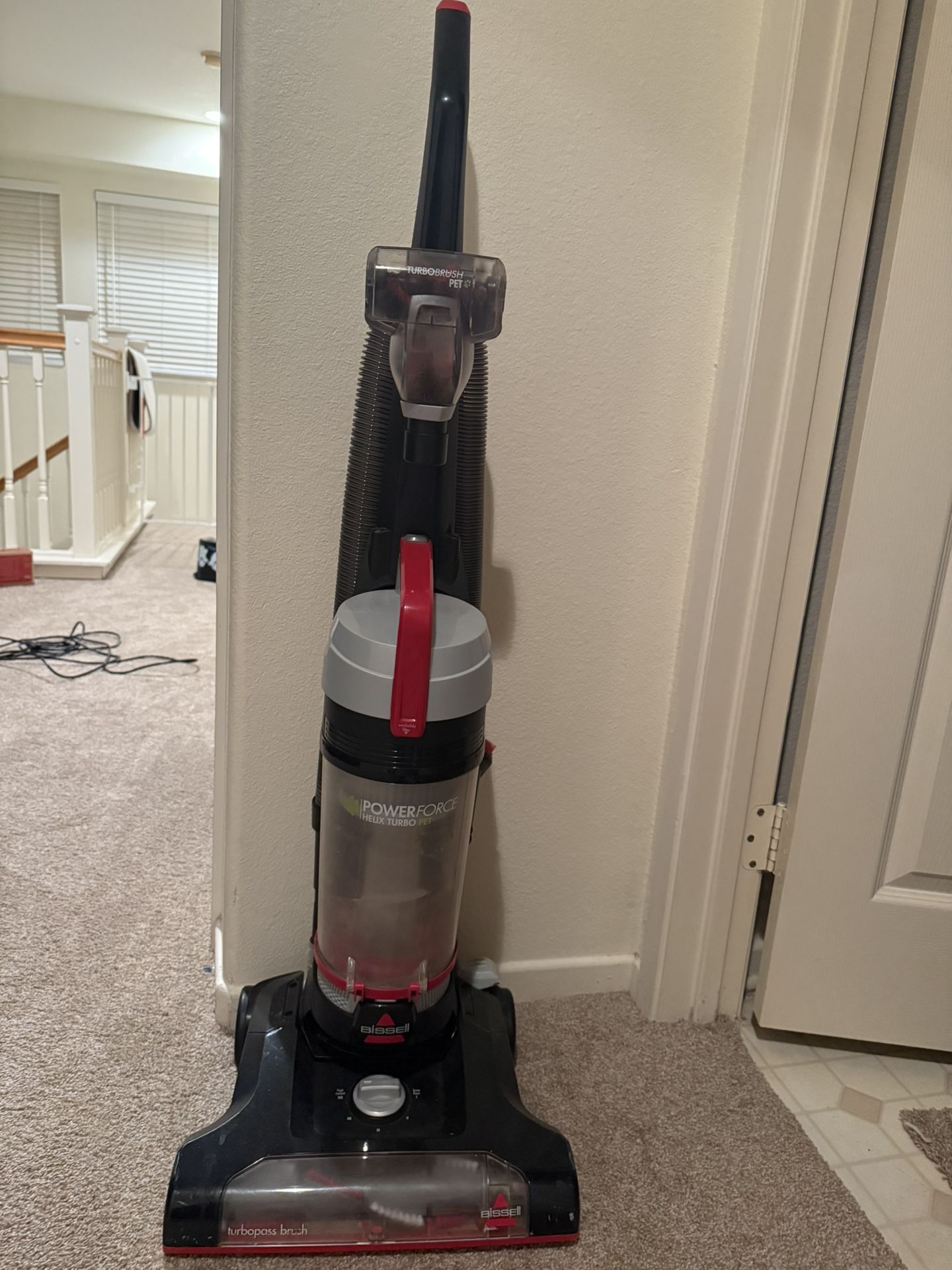 Vacuum cleaner works great has all pieces, needs a band replacement get in store or on amazing for 5-8$