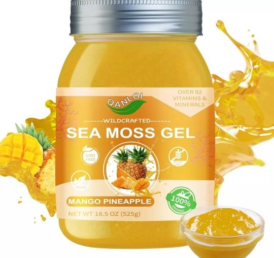 Organic Irish Sea Moss Gel, 18.5 OZ Gel with Real Fresh Fruit, Mango Pineapple