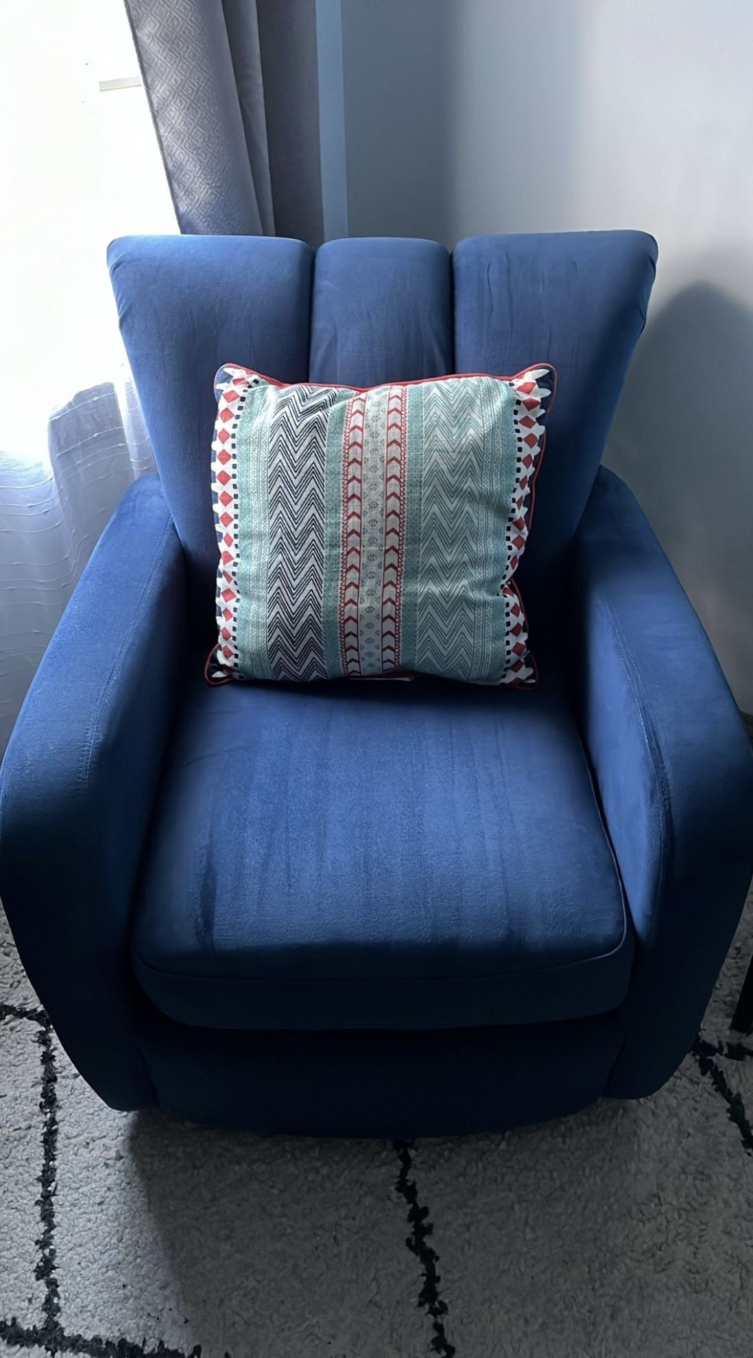 Blue rotating share that is 2 feet off the ground it’s brand new and the pillow is included