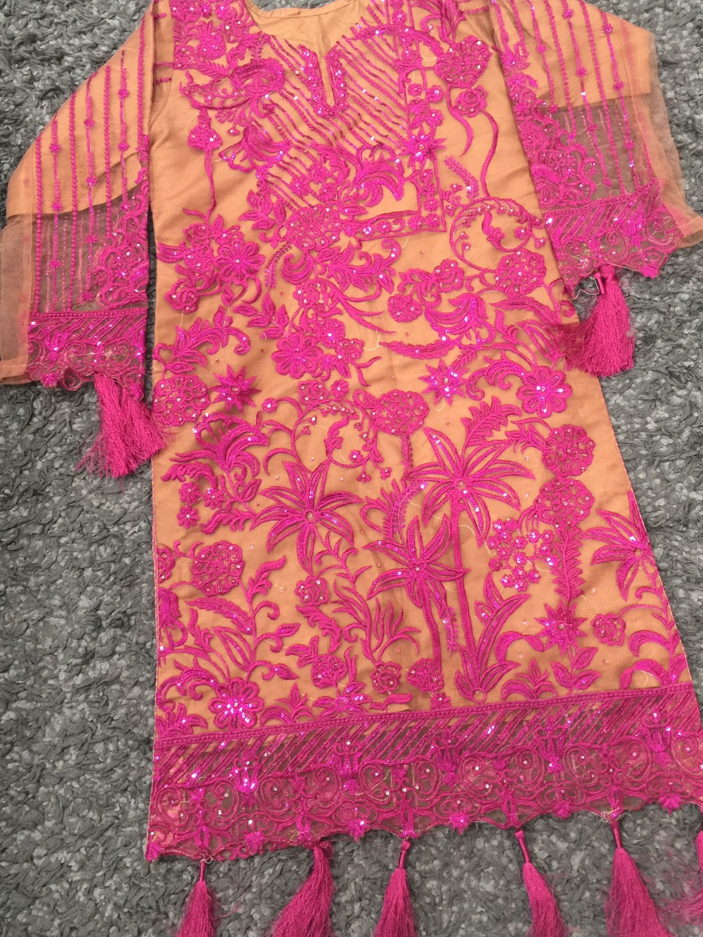 It’s new never used Beautiful color Beautiful embroidery Size (medium) 3 pcs I have more dresses available Door pick up Public meet up Shipping
