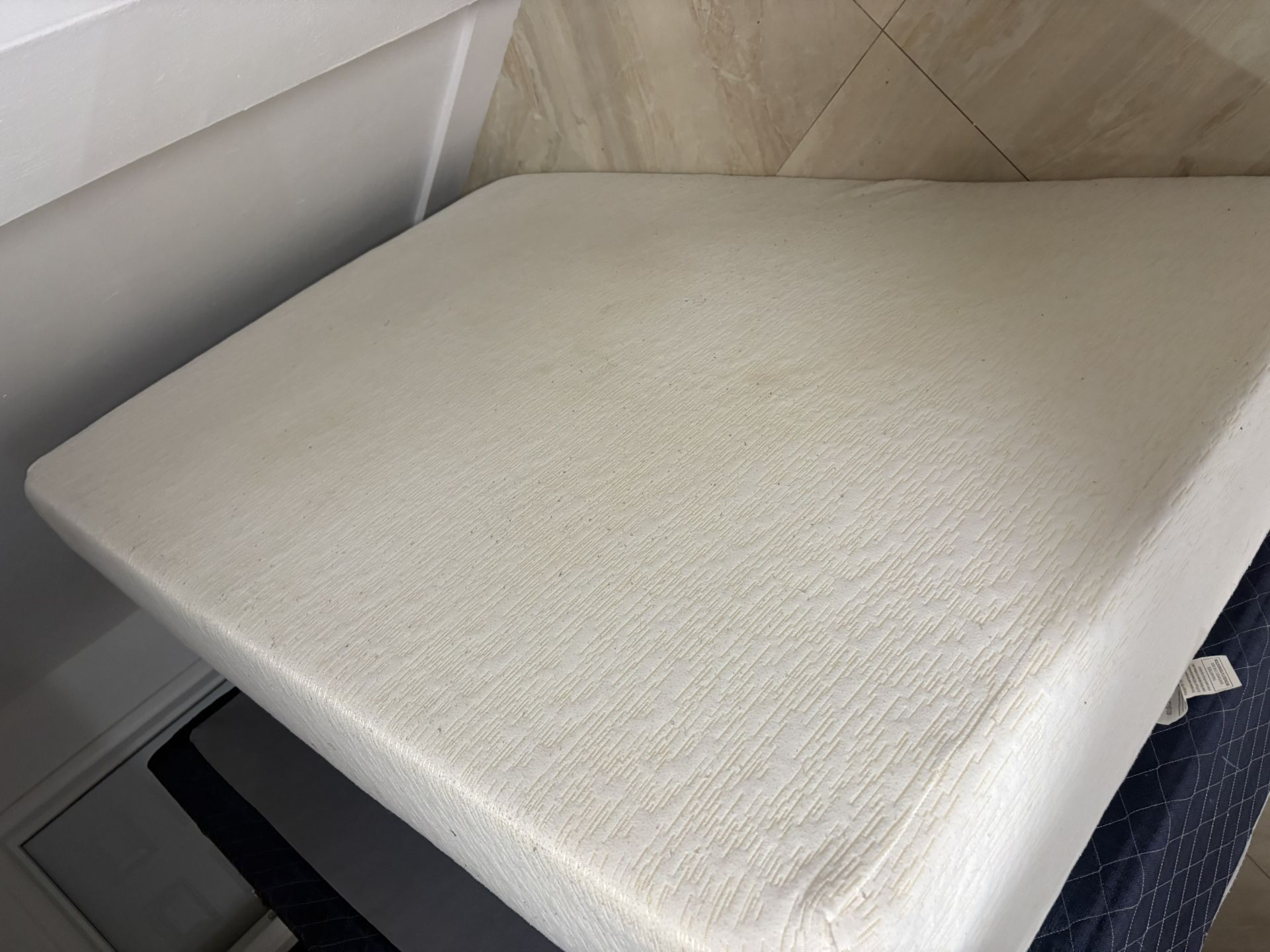 Queen size like you. Mattress has cover on it and well taken care off you can take cover off and wash as well.