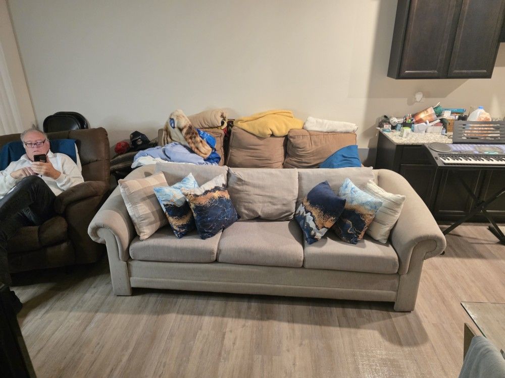 FREE Grey couch in great shape, zero smoke, plenty of comfort