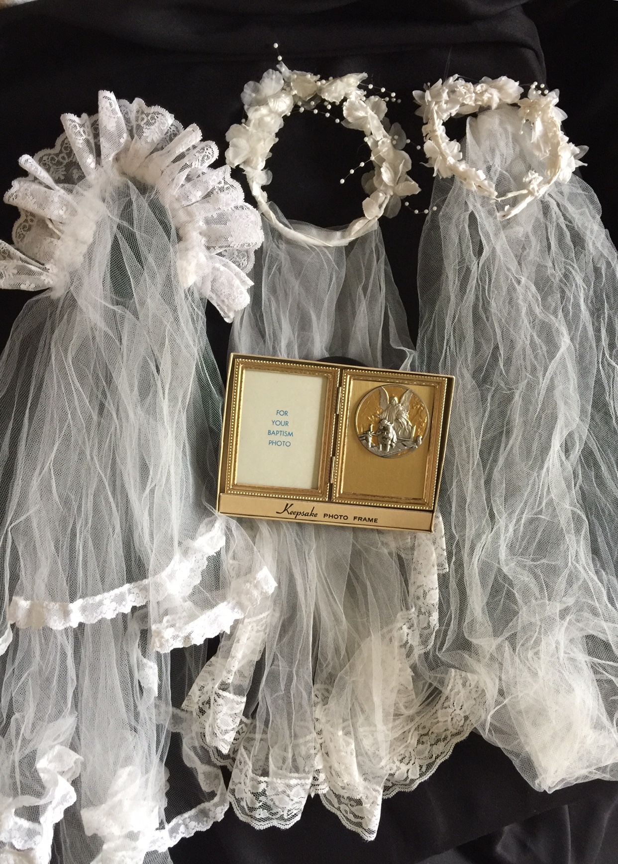Selling all together for $25 Three white lace and tulle with pearls first communion veils, bridal veils, flower girl veils dress up, party, wedding Brand new in box beautiful silver and gold plaque guardian angel frame, new baby, baptism, first communion, wedding, bridal gift, shower gift, new baby gift.