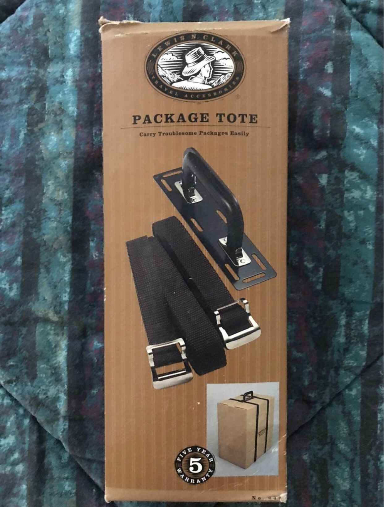 Package Tote, Straps, Suitcase, Luggage, Carry a Box, Travel, Parcel Brand new, never used It is a strap and a handle to carry a box like a suitcase. The two straps are 75 inch long each.