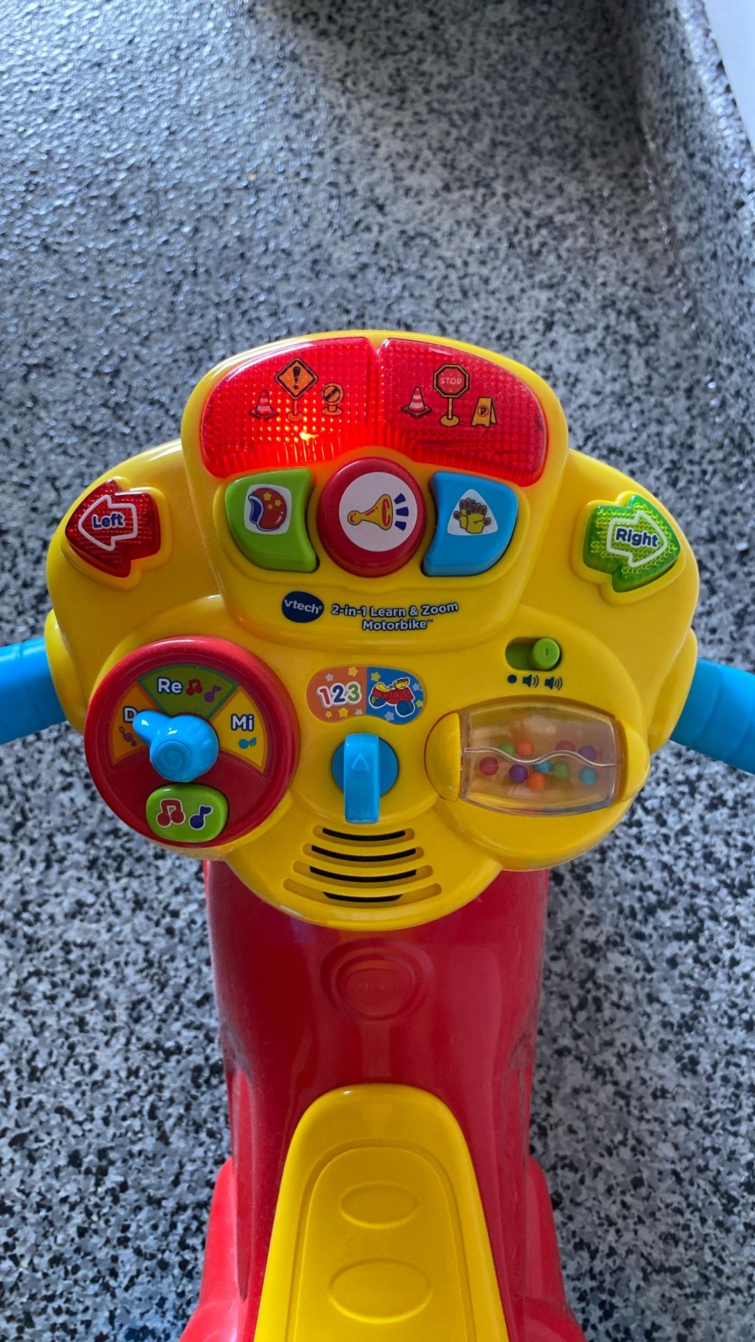 V Tech 2&1 learn & zoom motorbike. Everything works. Batteries in it are good.