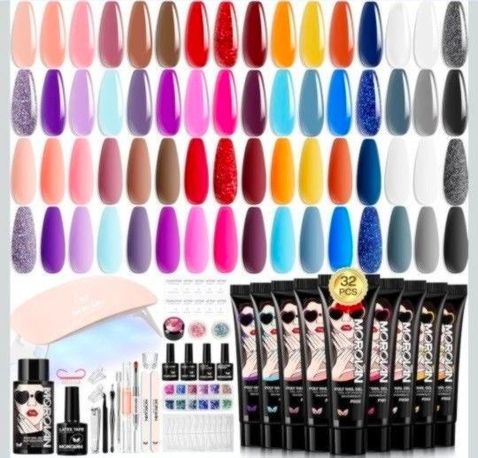 💥PICK UP AND CASH ONLY! MY PRICES ARE FAIR AND FIRM THANK YOU 💥 Morovan Poly Gel Nail Kit for Pretty Gift: Extension Gel Nail Kit With Nail Lamp Slip Solution Complete Professional Manicure Tools Everything In One Box DIY Set For Beginners at Home Salon Quality