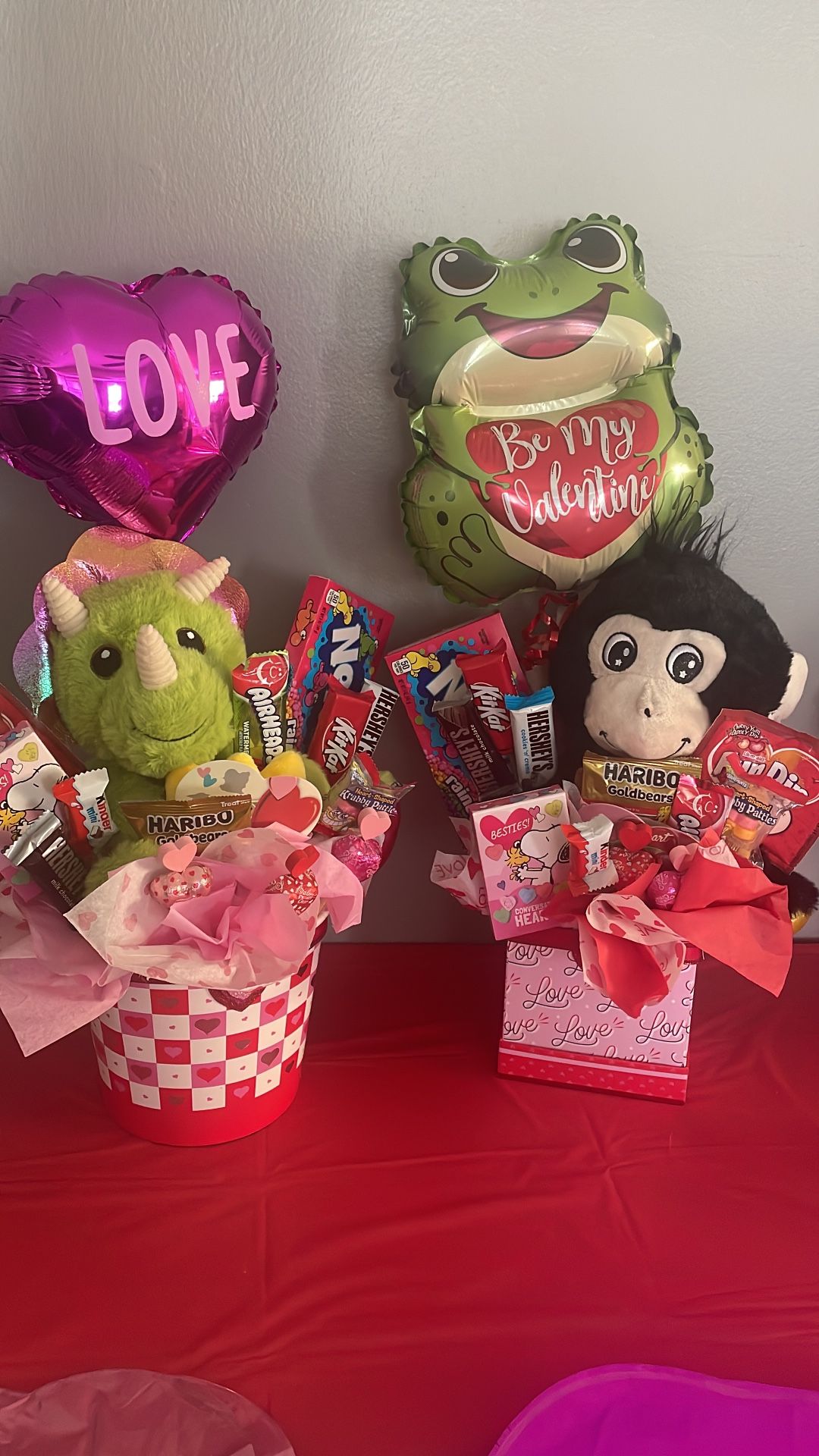 Get your Love one a small detail for This Valentines Day Mugs with plushies- $25 each Yeti Big Plush with box- $50 Each Monkey Box Plush- $40 Each Dinosaur Box Plush- $40 Each Small Plush with small box- $25 each Each comes with candy, a plushie, heart ballon For more details let me know If