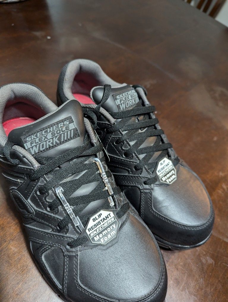 Anti-Slip steel toe work shoe by Skechers very comfortable and very solid shoe for work. Skechers flex work Brand new size 8 in men