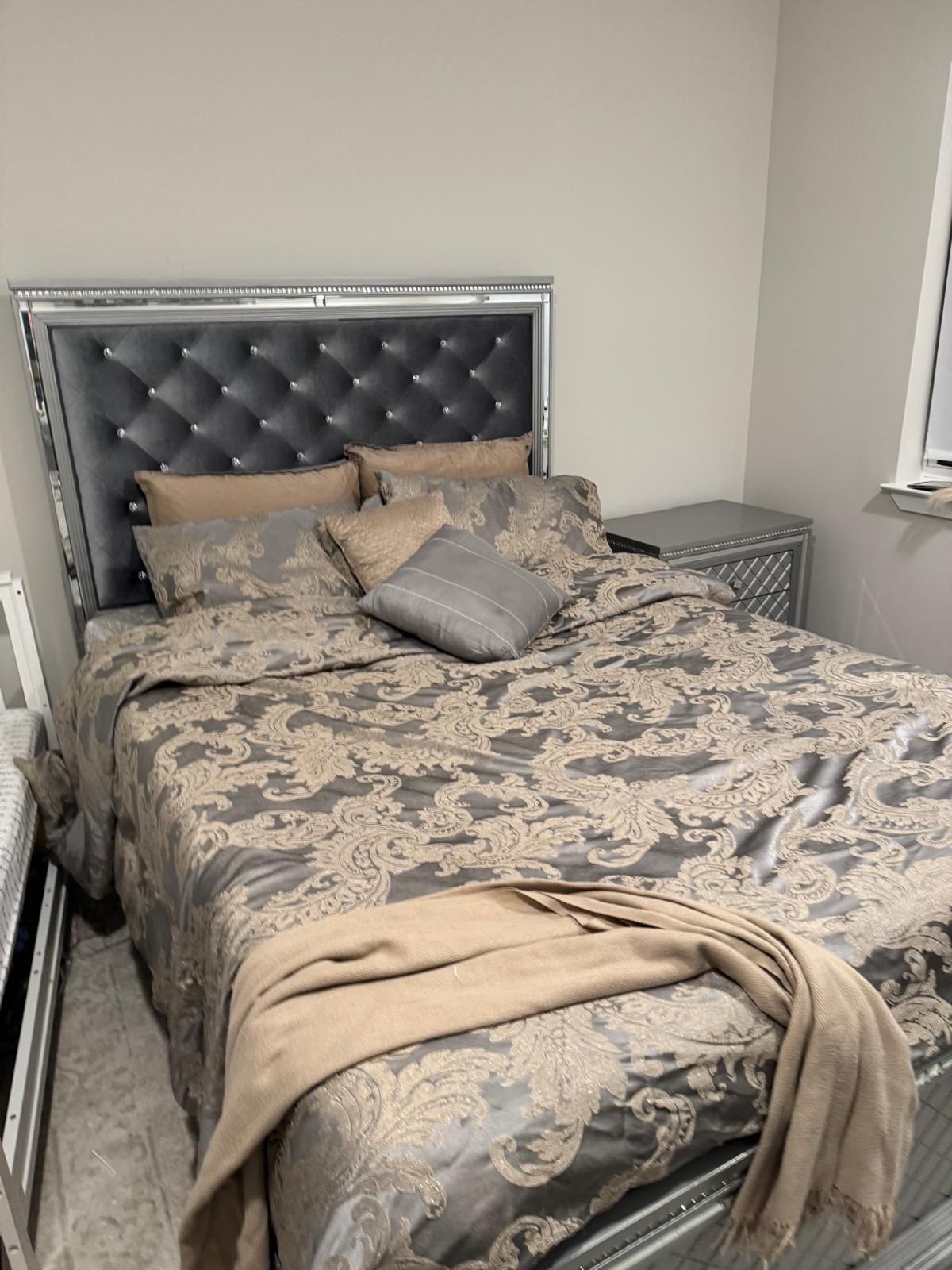 Bed with a mattress 2 nightstands A dresser A vanity