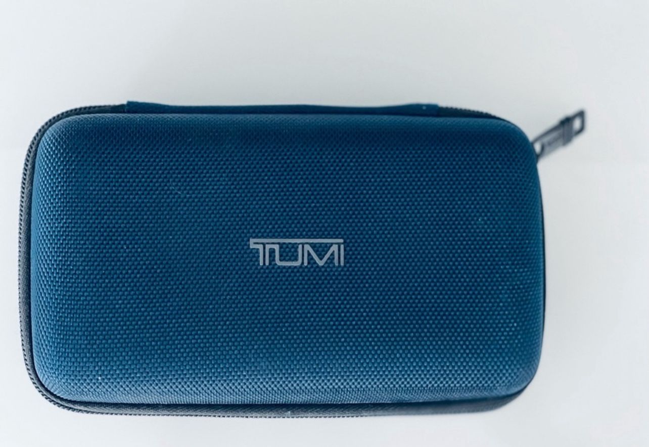 Tumi NEW blue hard shell toiletry bag.