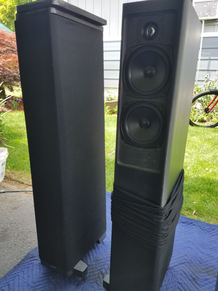 For sale is an excellent pair of Boston Acoustics vr950 s in all black..has sock style grill.%100 working and 9.5/10 cond. Linfield tweeters. has speaker spikes on feet.great sounding towers. google for specs.$100 firm. lower offers will be ignored...usually go for 1-150$ each tower..thanks for reading!.