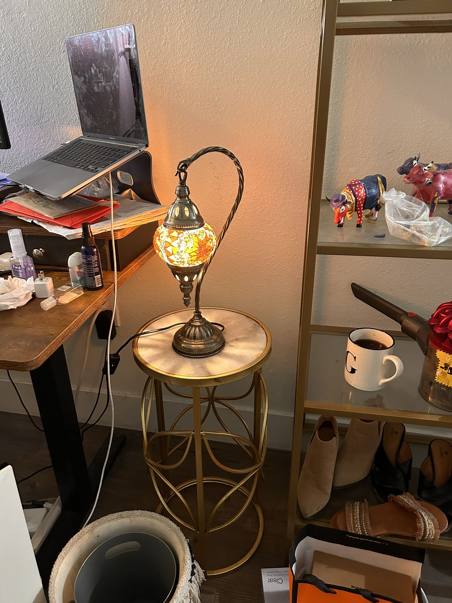 Set Of 2 Gold And Marble End Table Or Plant Stand
