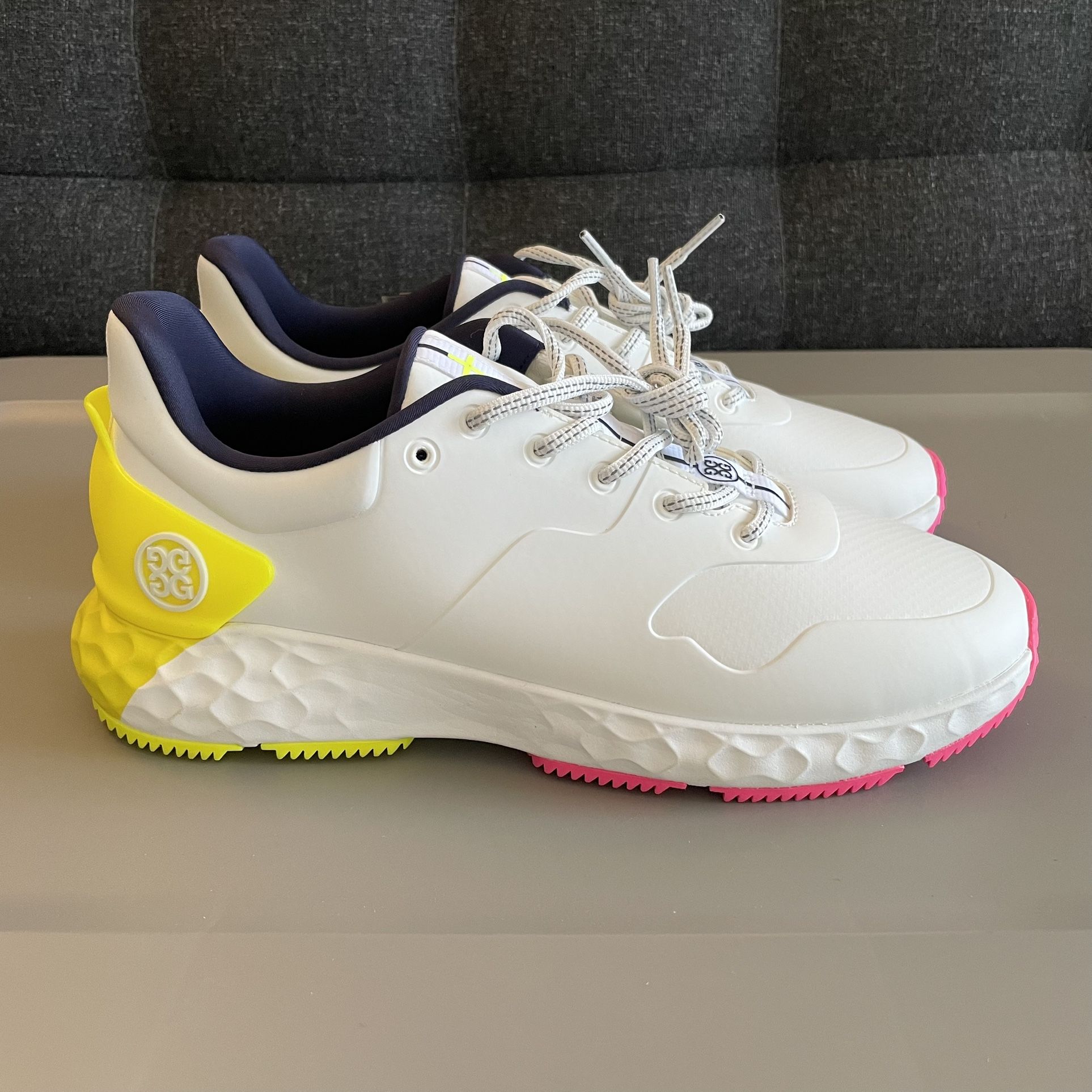 Size 9.5 G/Fore MG4+ Mens Sno Yellow Pink Golf Shoes GMF000017