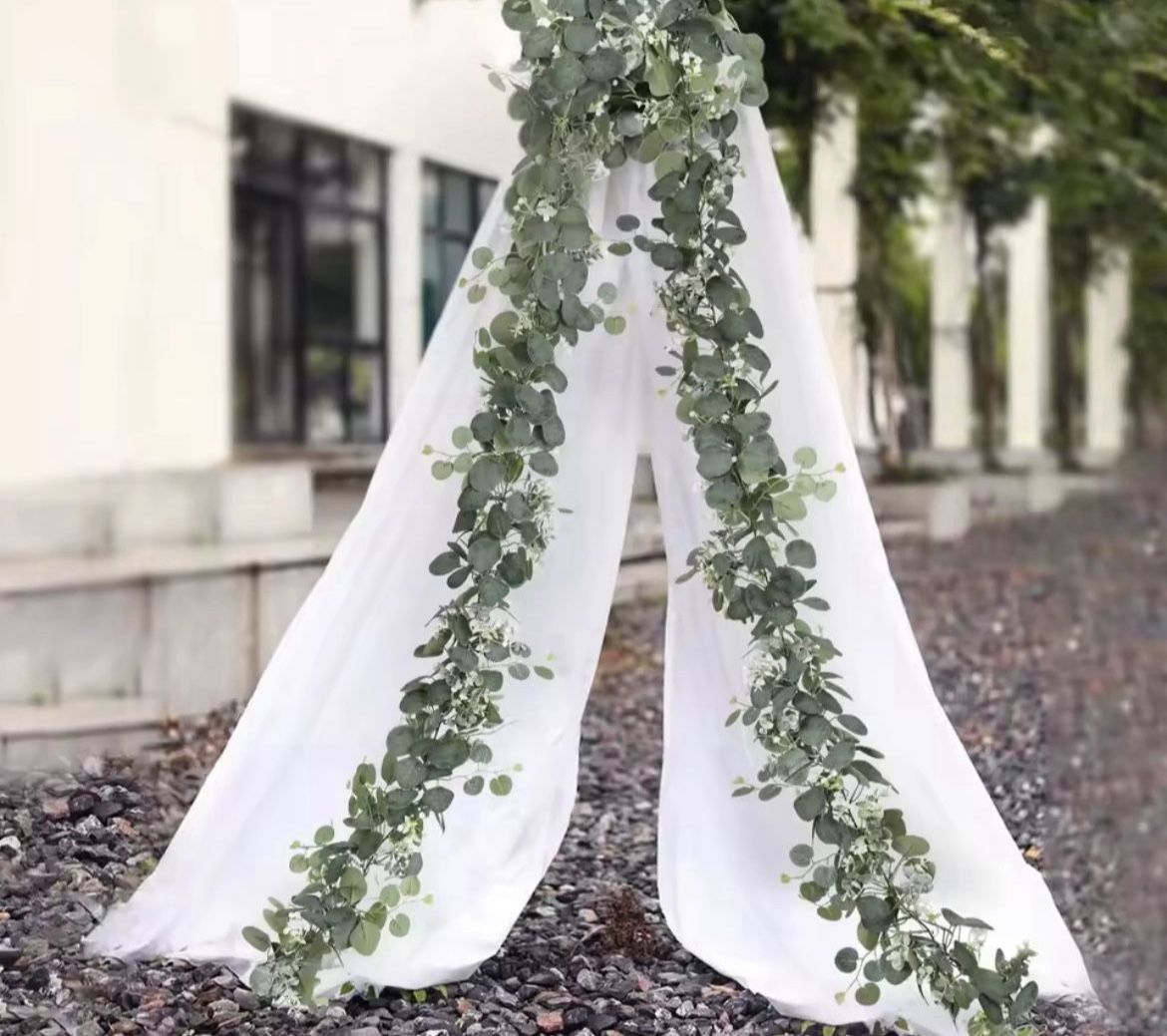 New 40 Pcs /Artificial Eucalyptus Leaves Greenery Garland Faux Plant Spring Vines with White Flowers Berries for Wedding Home Party Deco