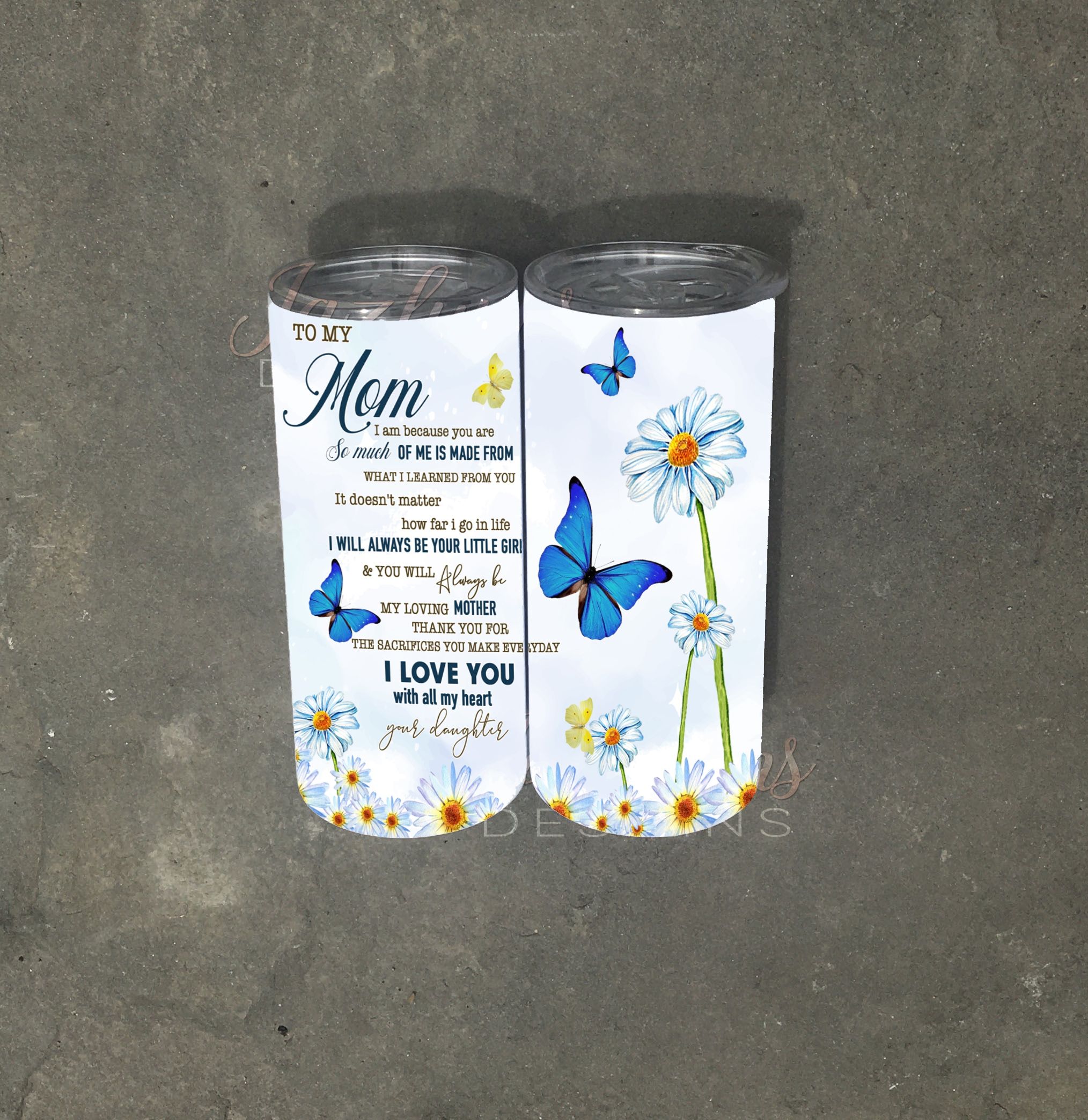 20oz For Mom Blue Butterfly Flowers Tumbler