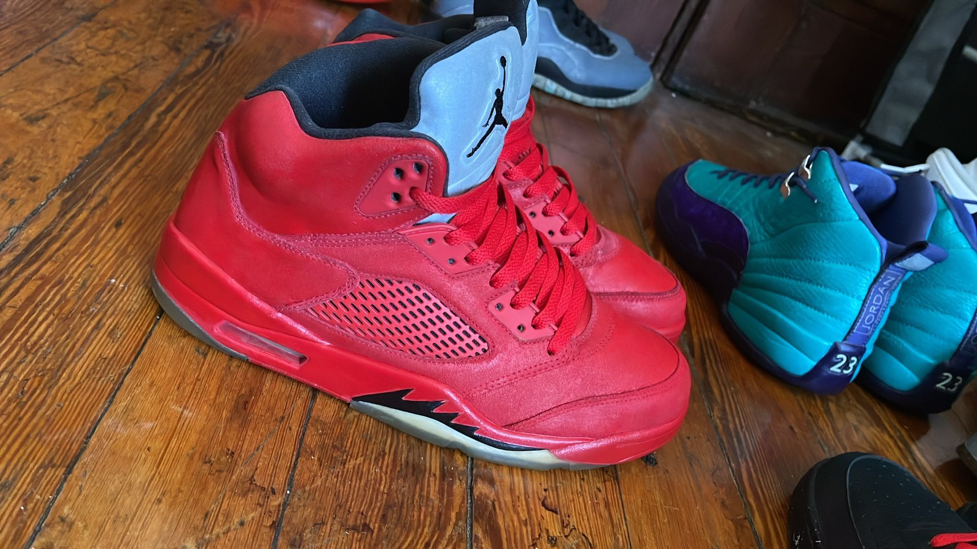 These Jordan 5 shoes were found in an old storage unit and they are in good condition. I am selling them as is so feel free to send offers!