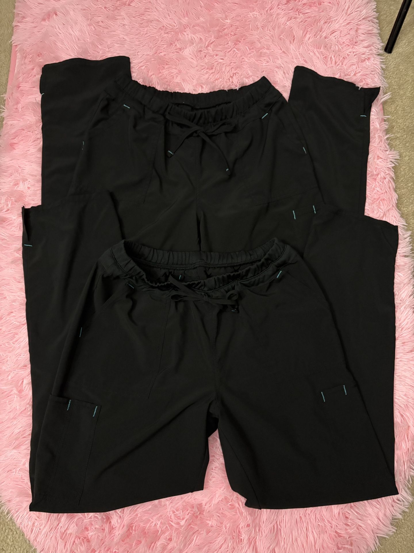 Both are size: M can fit up to a L In good condition Adjustable waistband and stretchy material