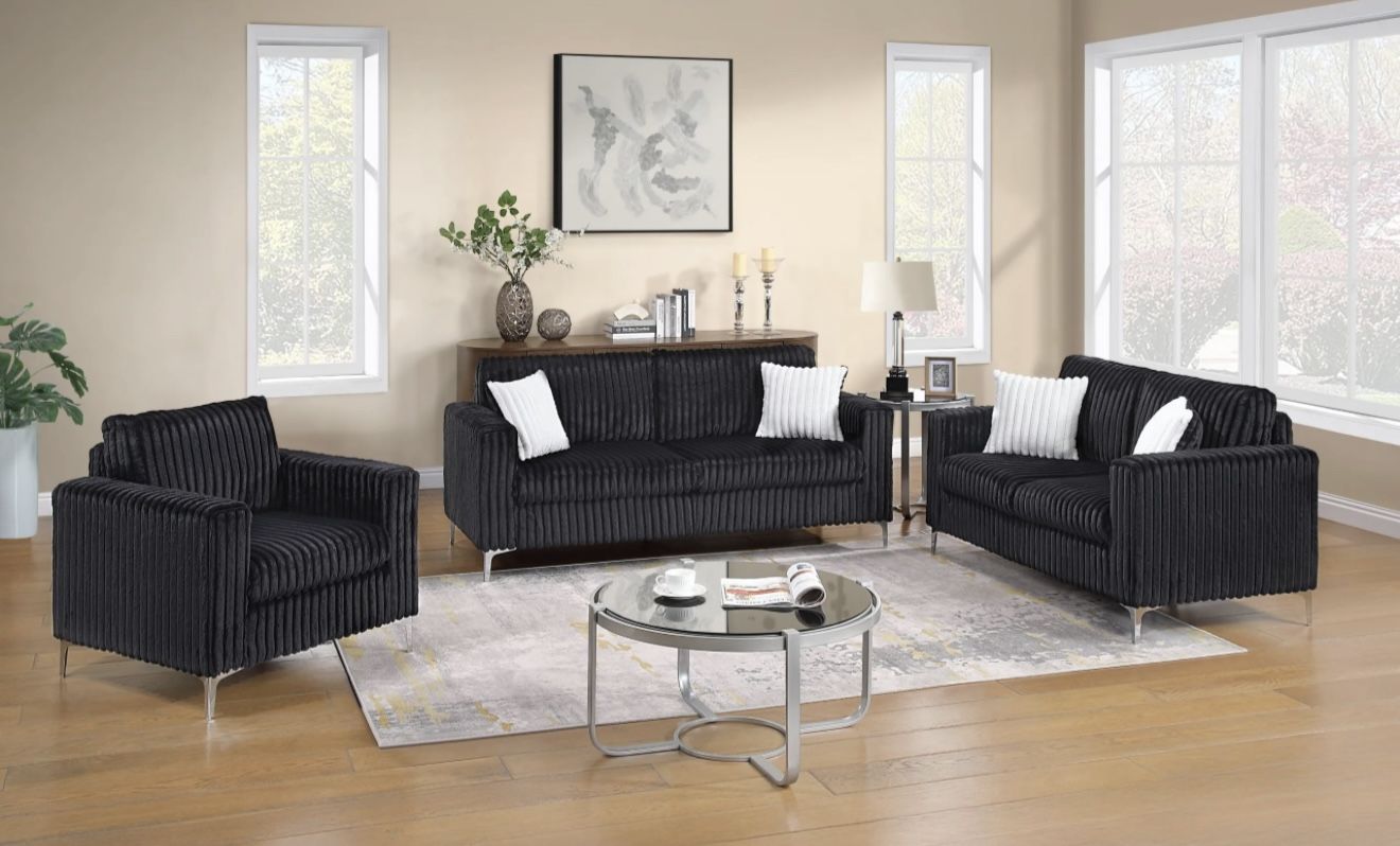Modern Corduroy Sofa, Loveseat & Chair Set With Pillows β ONLY $788!