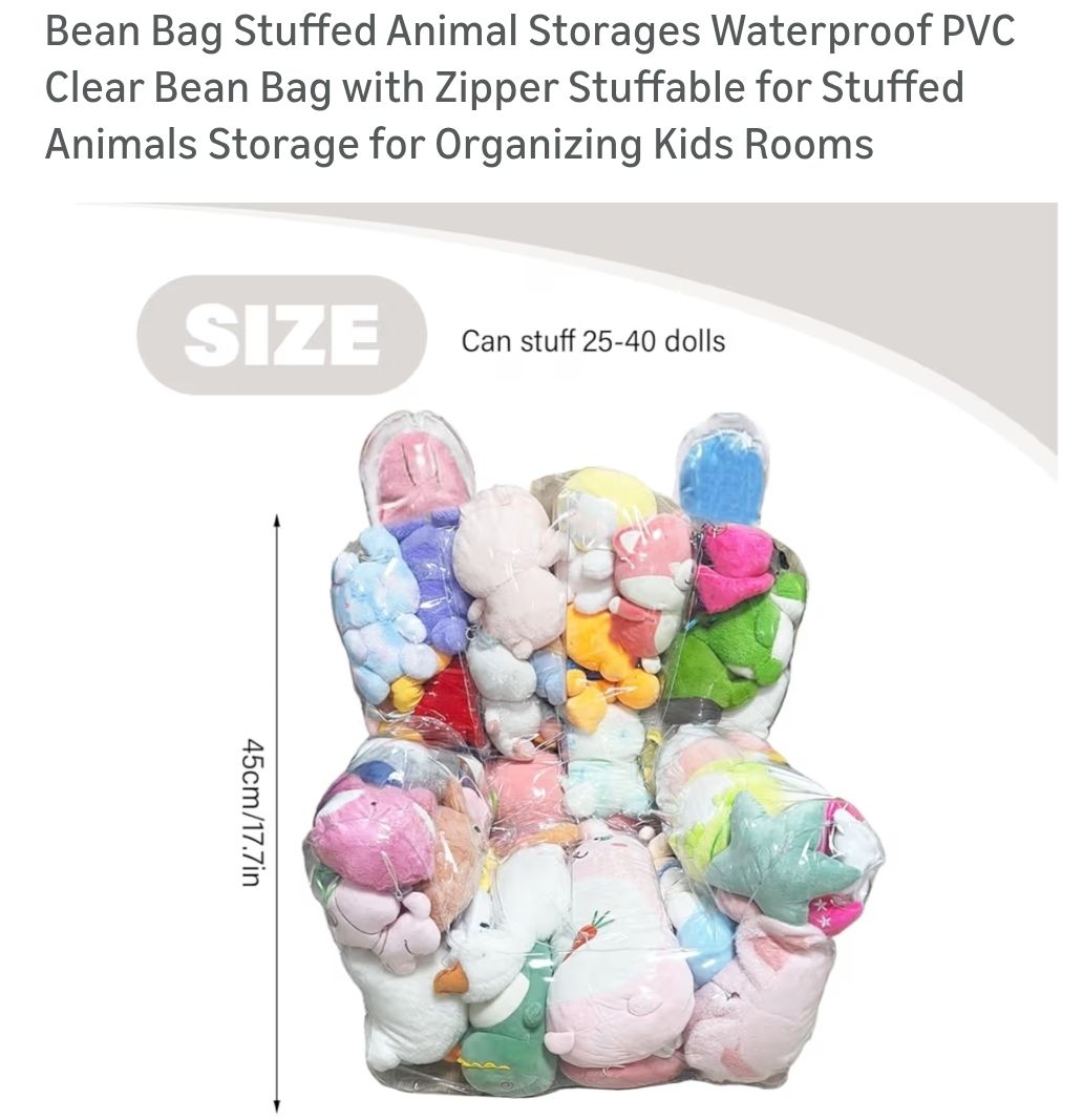 Toddler bean bag stuffed animal storage chair
