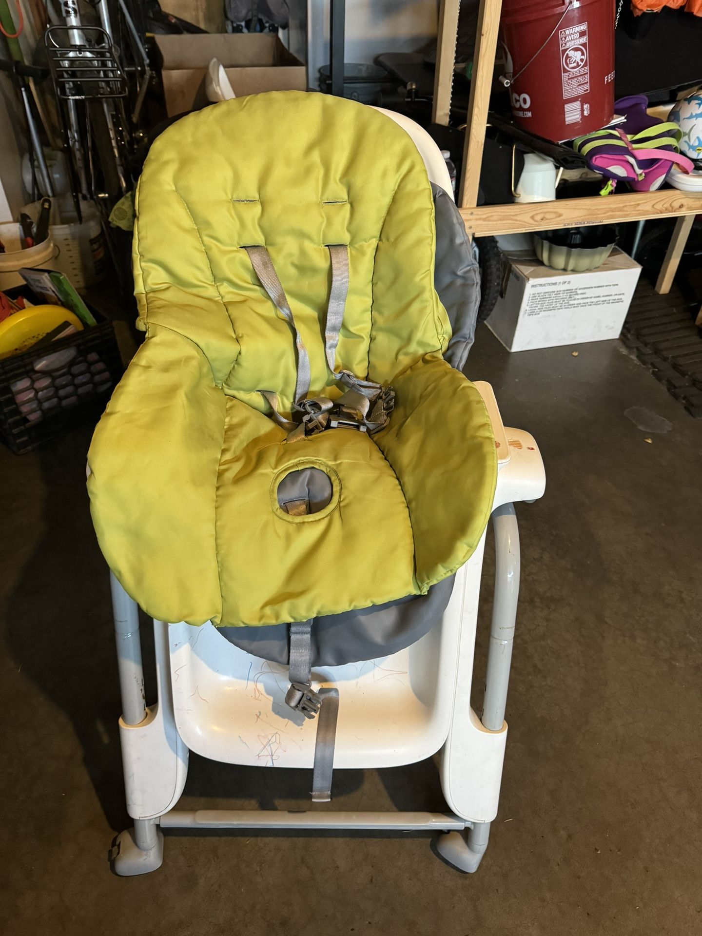 Older model OXO high chair, in good condition (note the marker scribbles and stickers! the markers should be washable so it should come right off, and the stickers may take some elbow grease). Comes with two freshly washed covers so that you can always have one clean when you need to wash the filthy one (both have straps). No tears, holes, marks, stains, etc on the covers. Comes with tray (just not pictured). Tray comes with a removable layer for washing and has the normal scuffs that come with regular use. See description for more. This high chair reclines (for younger babies), height adjusts, locks, etc). Located in E. Bremerton, but can also meet in Silverdale. https://offerup.com/redirect/?o=aHR0cHM6Ly93d3cuYmFieWdlYXJsYWIuY29tL3Jldmlld3MvbnVyc2luZy1mZWVkaW5nL2hpZ2gtY2hhaXIvb3hvLXNlZWRsaW5n