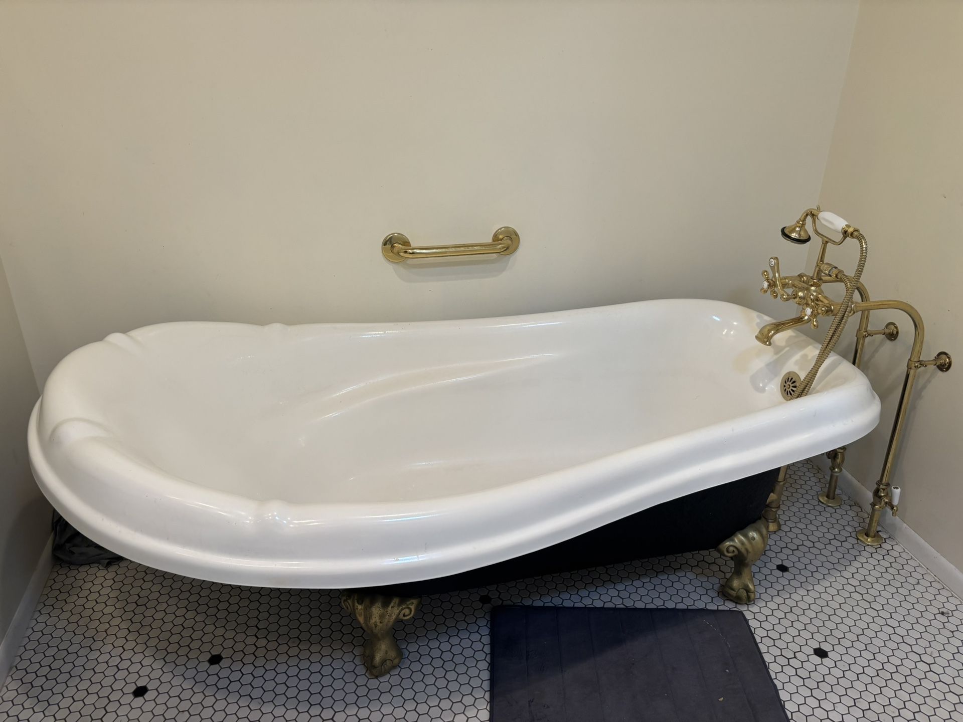 Remodeling and this doesn’t fit the new decor. Legs come off for transport, weights about 80 lbs. Fixtures included, I can help you load it. Minor scuffs on the tub floor, otherwise it’s in very good shape