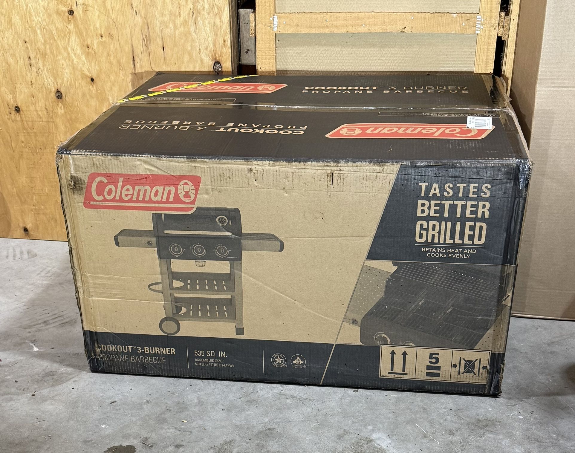 Coleman Cookout 3-Burner Propane Gas BBQ Grill w/ 535-Sq. In. Total Cooking Surface Instastart Ignition, Black/Gray Brand New