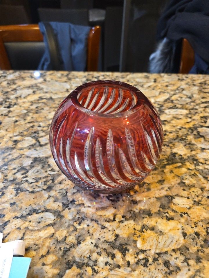 6” Bohemian Red Ruby Cut Crystal Glass Vase