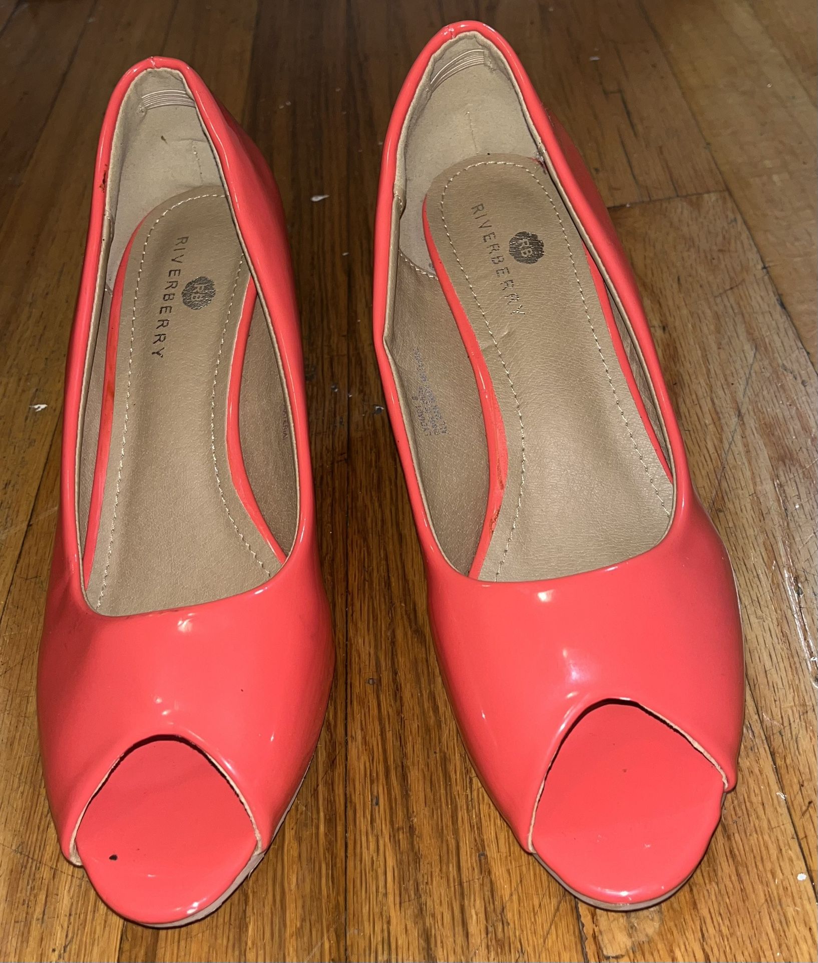 Elevate your look with these chic coral peep toe heels from . Perfect for adding a splash of color to any outfit