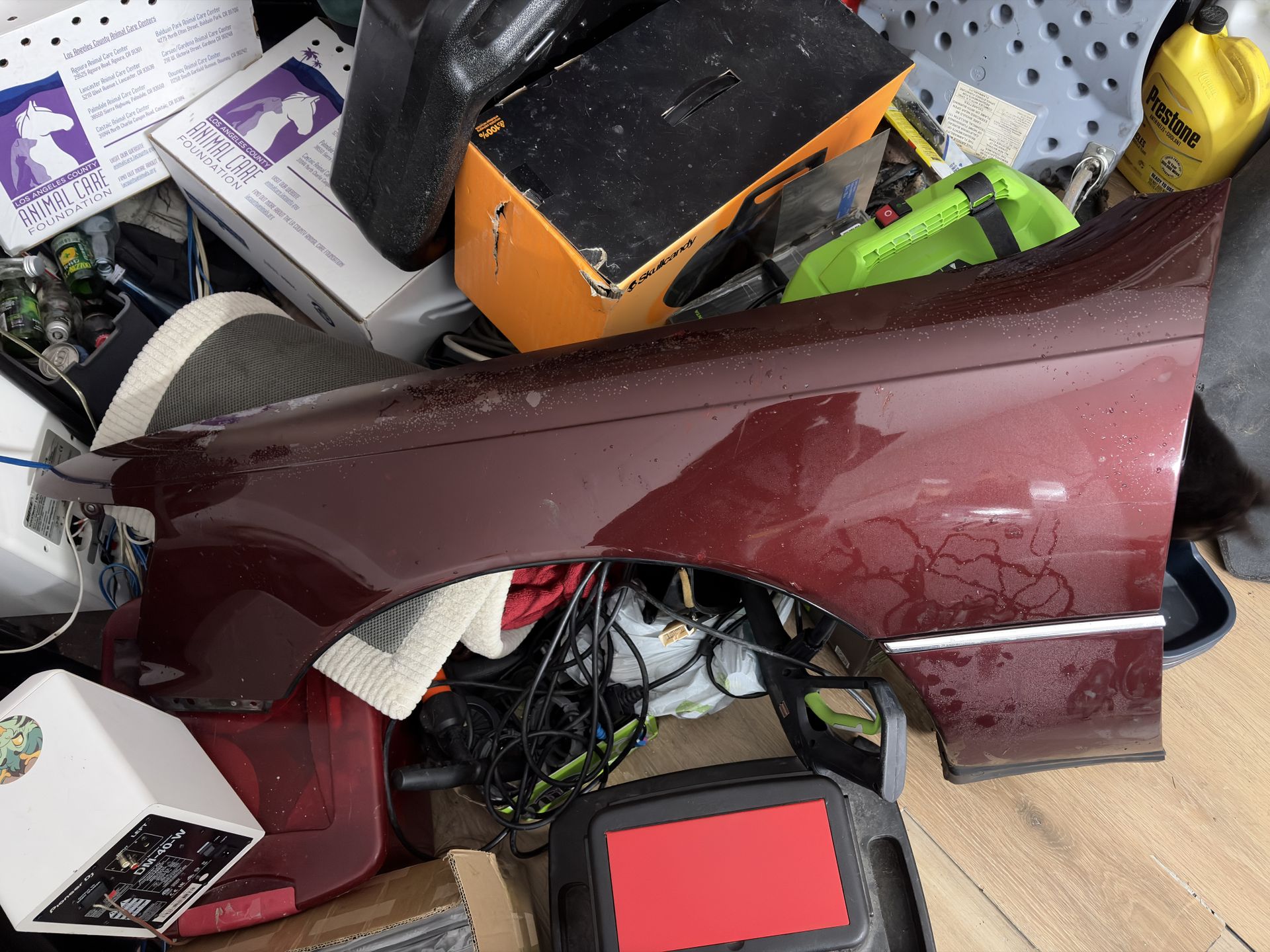 Fender and cladding piece are in great shape metal wise, the paint is in HORRIBLE condition particularly the top part of the fender and the cladding piece has a big scratch on it otherwise good for repaint or you don’t care about the paint damage.