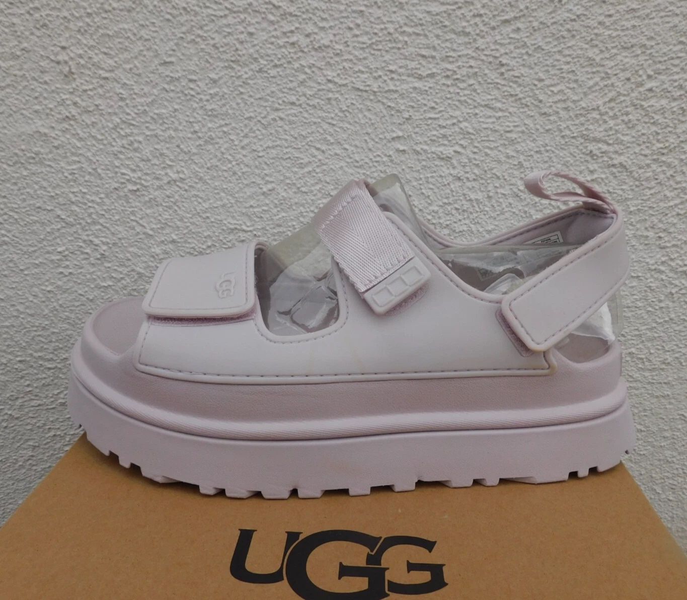 Brand new in Box 100% Authentic Women's UGG Goldenglow Platform Strappy Sandals Color: Bay Fog Serial Code: 1152685