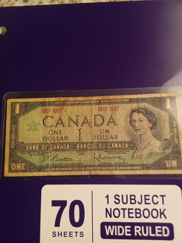 1867 To 1967 Bicentennial Canadian one-dollar bill,