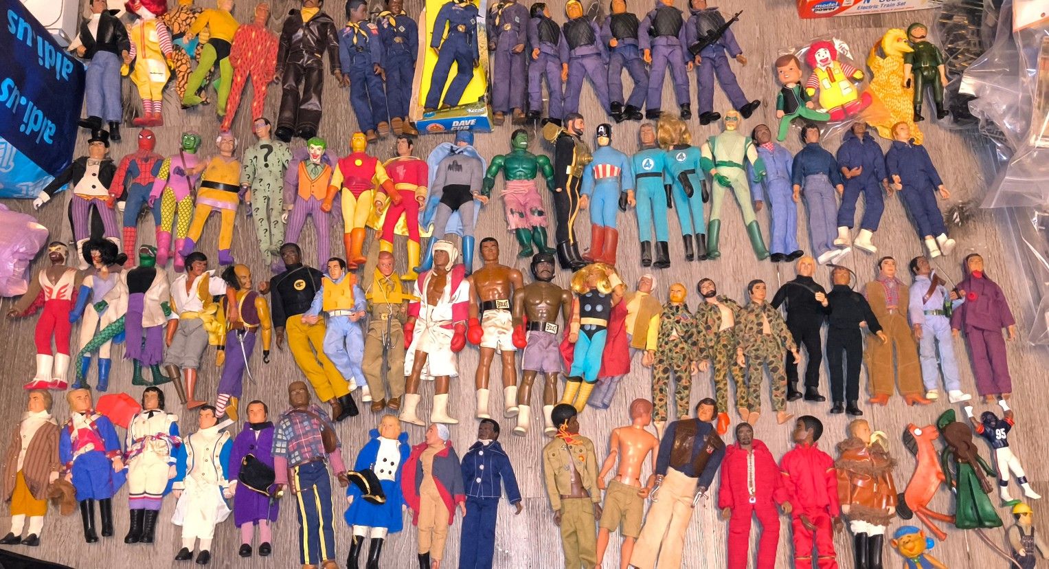 81 yes eightyone action figures. Slightly used. Sat on display in my bed room collected dust on the shelves. Some stuff less than others. Most of these dolls are valued over 50 each some valued at over 200 and one valued at 750. Prices vary due to condition. Make me an offer on the lot or 30 each. I am willing to make deals. It don't hurt to offer up. Shoot your shot. I wanna sell fast..try me... Best offer. Best offer is 20x 80=1600 I need at least 20 each if you want the whole lot. If not 30 to 35 each doll
