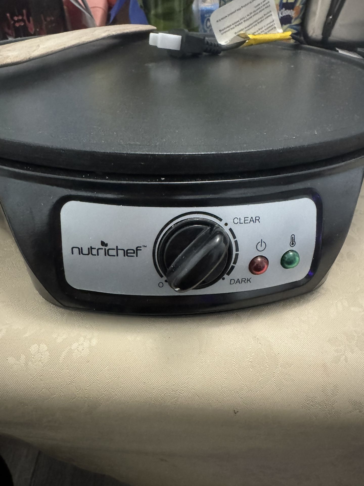 Nutrichef Electric Crepe Maker & Griddle Cooktop - Nonstick 12 Inch Aluminum Hot Plate with LED Indicator Lights & Adjustable Temperature Control - Wooden Spatula Not in need of it anymore(: Used twice.