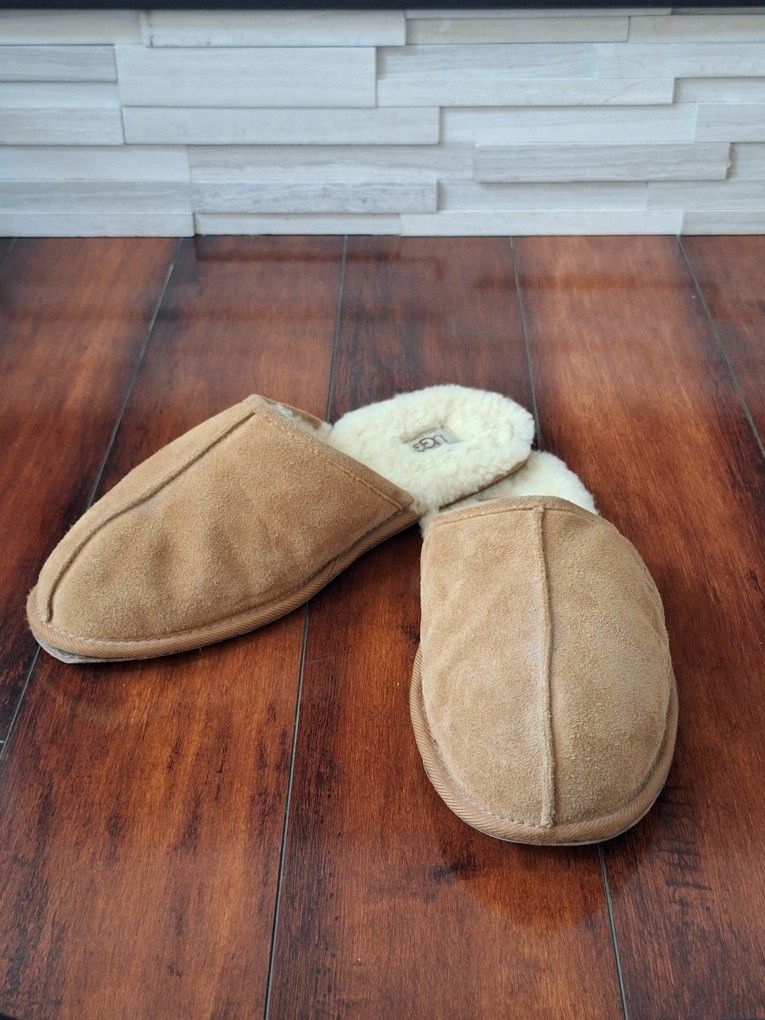 UGG Men’s Scuff Slippers Chestnut Suede Sheepskin Size 12 (Style 5172)