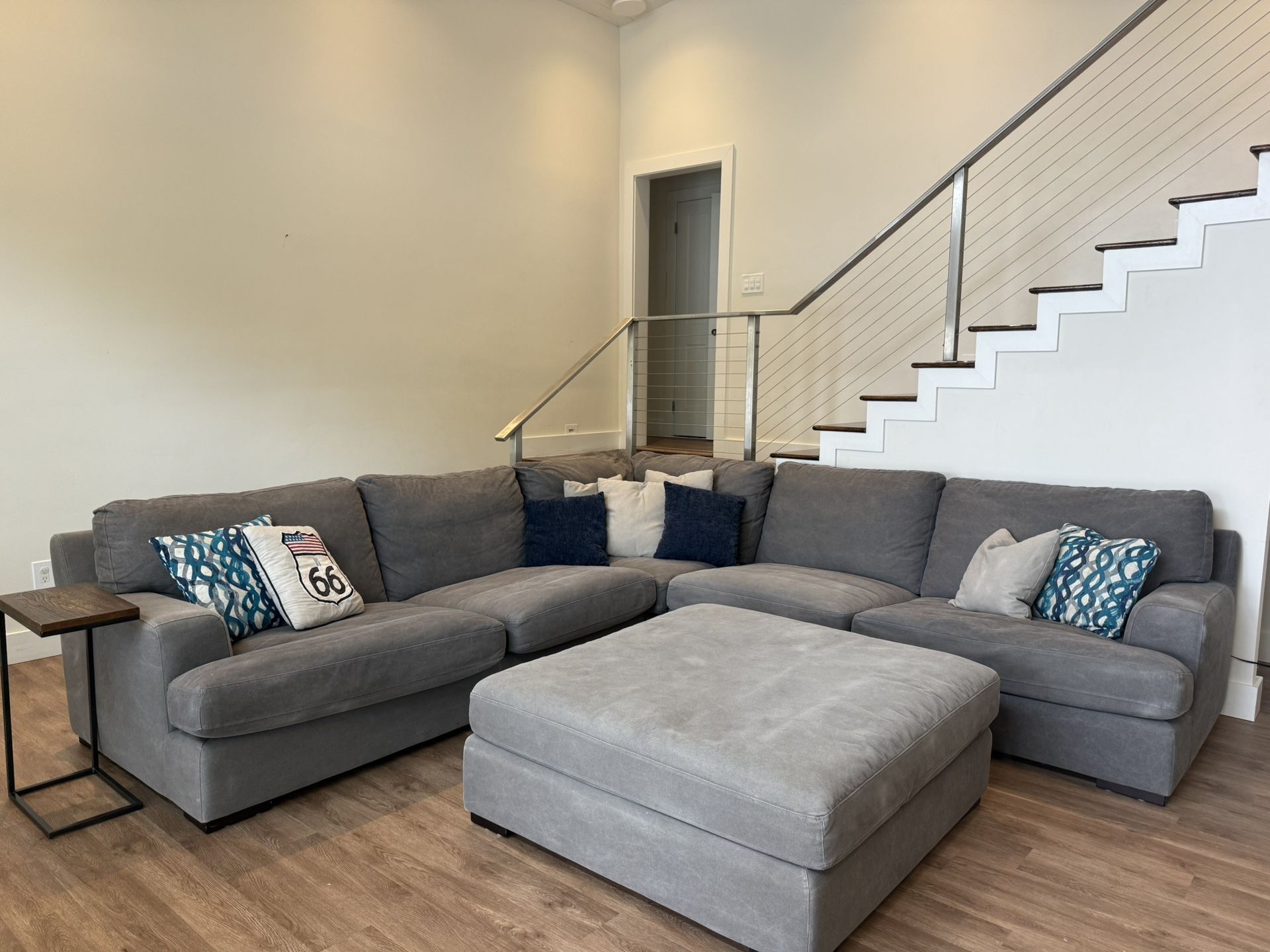 This is 120x 120 L shaped gray fabric couch, extra wide, comfiest couch I’ve ever owned and unfortunately it does not fit in my new space! Originally with the configuration and oversized matching ottoman it was around $4000. It is an excellent condition could use some spot steam cleaning a few places (I’ve done it before, it cleans up very well back to brand new looking) other than that this couch will last you a long time. pick up in Jupiter farms. Or can arrange delivery once it’s paid for. Thanks