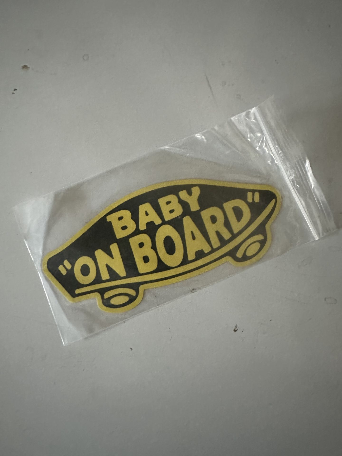 Located in W Palmdale near the amphitheater. Brand new Vans “Baby on Board” magnet. Can easily be removed and stuck back on. Size is about 3 3/4” x 7”. $20 FIRM. No offers.