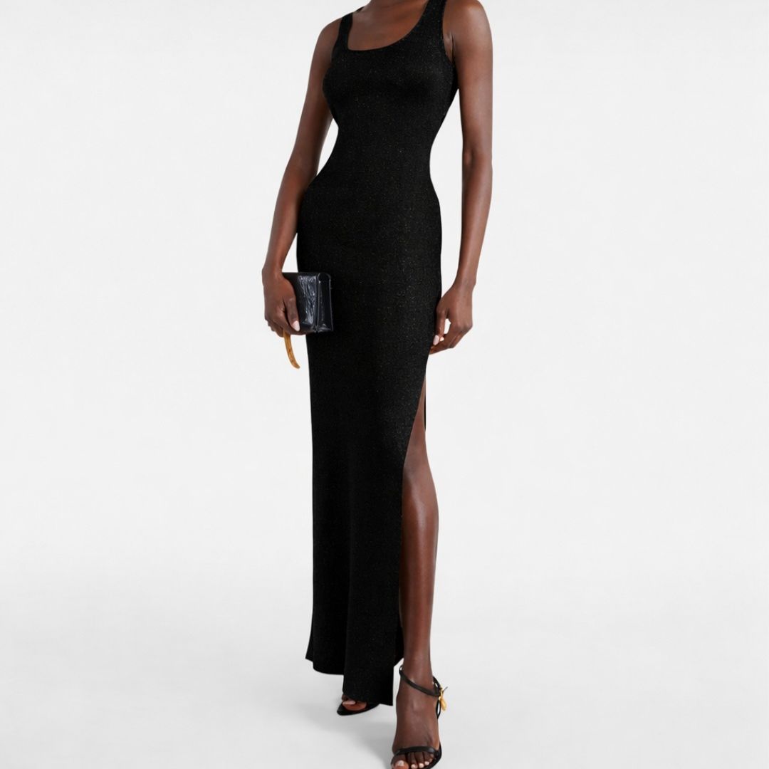 The Tom Ford Black Knit Metallic Maxi dress in size XXS is a sophisticated and stylish piece perfect for special occasions like weddings and parties. Made of viscose fabric with a sleek knit design, this sleeveless dress features a round neckline and a pullover closure for easy wear. The long black dress with metallic accents and a sexy, designer vibe showcases Tom Ford's signature style with a touch of luxury and glamour, making it a standout choice for any fashion-forward woman. Ideal for summer, this dress exudes elegance and sophistication with its stretchy and comfortable fit. Retail price: $2500 Material: 57% viscose, 28% polyester, 15% metallic fibres. Care instructions: dry clean. Made in Italy. Closure: self-ties on the back. · True to size · Low back · Fitted · Stretchy fabric · slit length 74,0cm-29" · The model seen in the picture is 178cm-5'10" and wearing a size XS SKU: P00898608 Brand new without tags. Comes with the original Tom Ford garment bag and an original Tom Ford hanger (per request). Size: XXS but will fit XS and S due to stretching material. Smoke free, pet free home. Feel free to message me if you have any questions. Please check my other items too. Authenticity is 100% guaranteed ✅