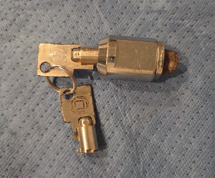 Cylinder lock with 2 keys. Commonly used for storage units. Has some wear and a bit of rust but still works perfectly. Pickup in Lakeview, Lincoln Park or Skokie.