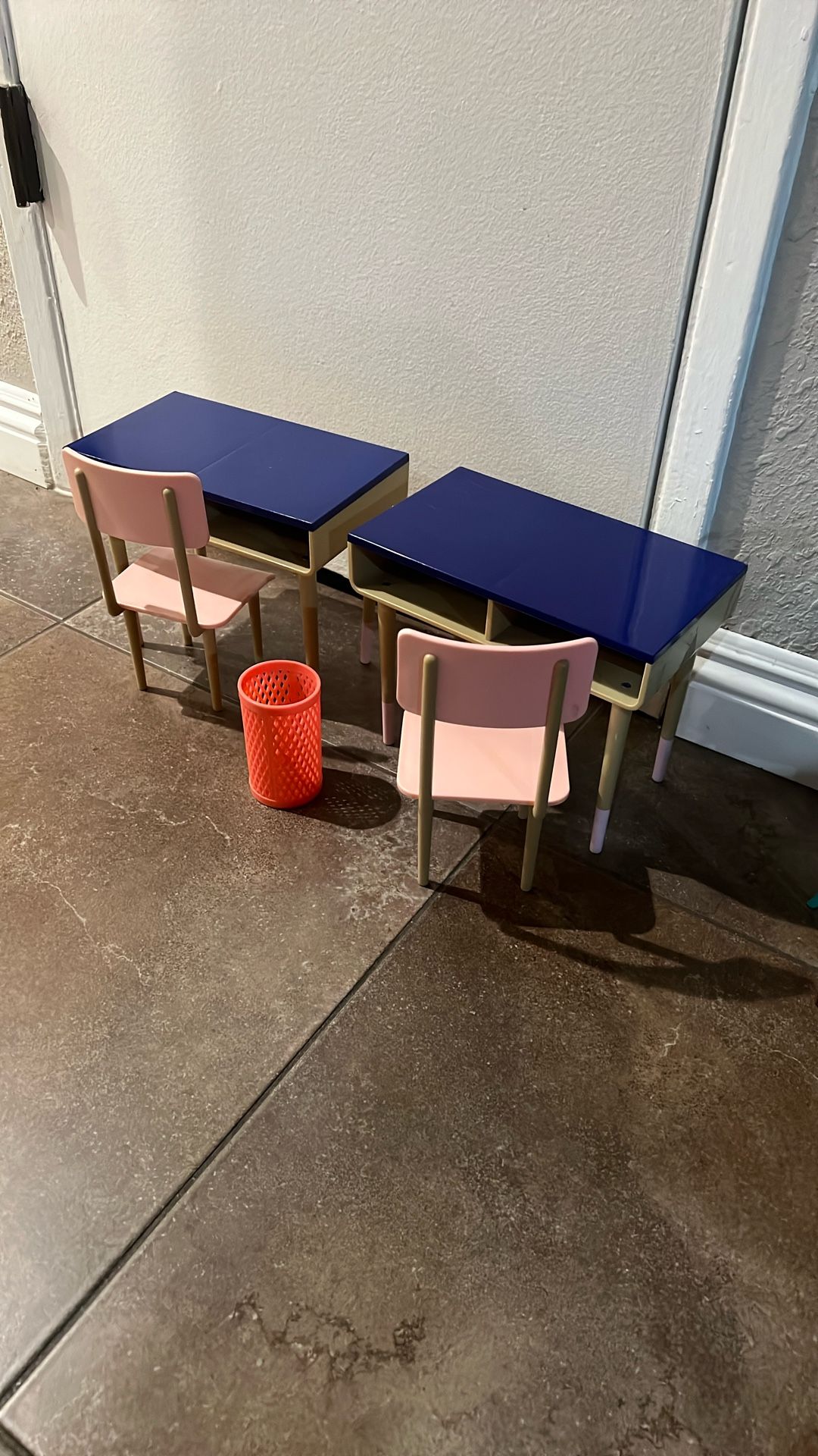 Used and in great condition. Two sets of desk/chair. One waste basket. Our Generation brand. For 18” dolls.